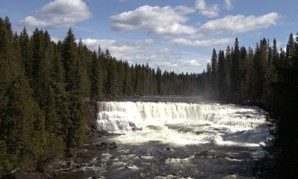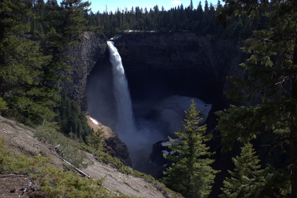 The most famous of the falls in Wells Gray Provincial Park is Helmcken’s Falls, the 4th largest waterfall in Canada. Water drops 141 m (463ft) down a circular cliff created by flowing lava over 10,000 years ago. You can easily view this spectacular land formation from the viewing platform a very short walk from the parking lot.