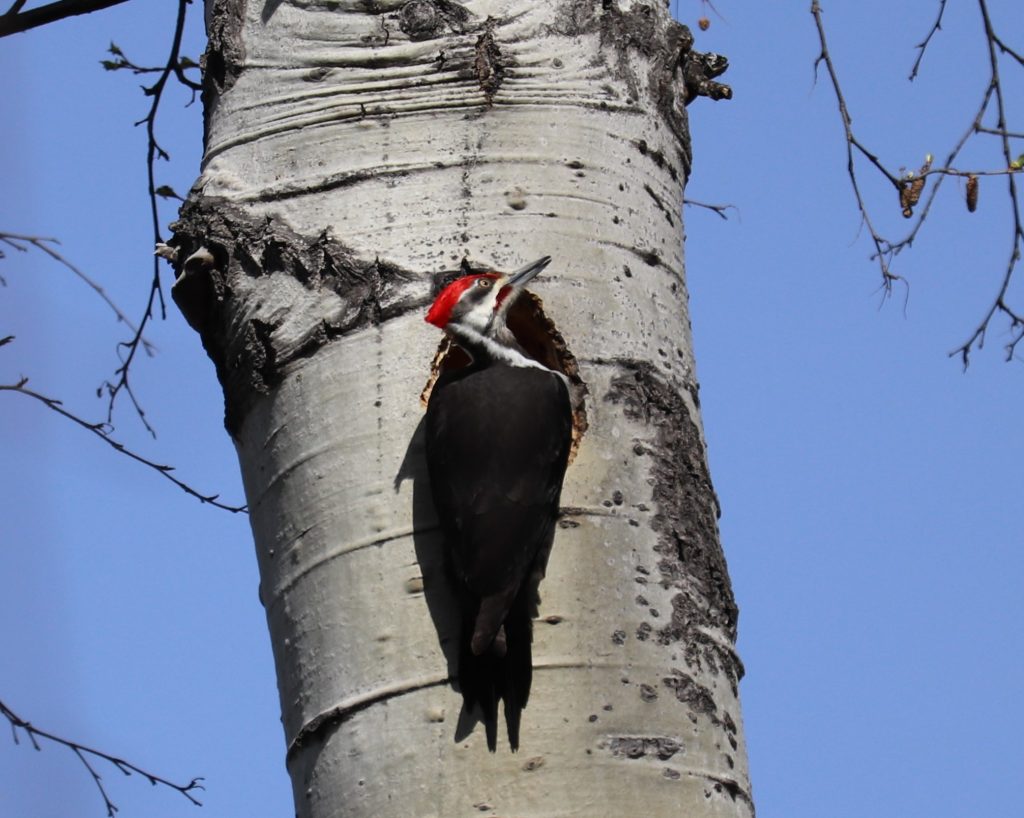 Moul’s Falls is at the end of a 3km trail through forest. This path is well maintained, but does have lots of exposed roots and rocks. But what a great spot for birders! We saw a pileated woodpecker building a nest in the tree. We watched it swoop to the tree, then climb into the hole. A moment later wood chips were flying out of the hole, accompanied by the bird’s unmistakable drumming sounds. There were several smaller birds as well, singing to us as we walked down the trail. Unfortunately, Bob and I had limited time, so we chose to turn around halfway down the trail, before we reached the falls.